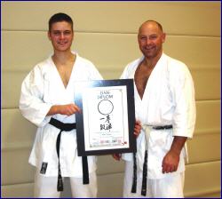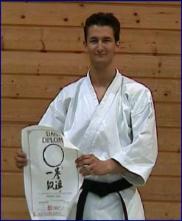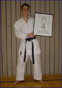 Erfolgreicher Karateka: Christian Maus mit seiner Urkunde zum 1. Dan Shotokan.