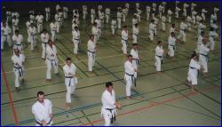 Am Samstag stand für alle Zanshin - Mitglieder in der Sporthalle ein fachbezogener Karate-Lehrgang auf dem Programm: Georg Karras, 5. Dan, Karate-Trainer und Dojo-Leiter von Boshido Bonn, hatte die fachliche Unterweisung übernommen. Fast 100 Vereinsmitglieder nahmen an dem fünfstündigen differenzierten und harten Training teil.