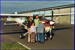 Im Fokus des Piloten: Laura hat es durch ihren Tombola-Gewinn möglich gemacht - Familie Taccuci nach den Rundflügen vor der viersitzigen Cessna C 172 Skyhawk in Bonn - Hangelar