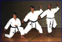 Ganz im Zeichen eines bundesweiten und gut besetzten Karate-Lehrganges stand am 23. Februar 2002 die Sporthalle in Refrath. Gastgeber dieser hochkarätigen Veranstaltung war der Karateverein Zanshin Bergisch Gladbach. Vorsitzender Hardy Berscheid begrüßte rund 250 Sportler aus dem gesamten Bundesgebiet, darunter ein Drittel Frauen und Mädchen. Den ganzen Tag über dominierten Sportler während des Gemeinschaftstrainings in weißen Sportanzügen mit ihren farbigen Leistungsgürteln, darunter allein 120 Schwarzgurt-Träger. Mit von der Partie der Kata-Bundestrainer im Deutschen Karate Verband (DKV), Efthimios Karamitsos, und Marie Niino, die dreifache Kata- Europameisterin im bundesdeutschen A-Kader, die sich dieser Sportart vor elf Jahren verschrieben hatte. Die beiden Spitzensportler und zugleich Werbeträger des Karate-Sportes setzten lehrreiche, sportliche und technische Akzente für die anwesenden Lehrgangsteilnehmer.