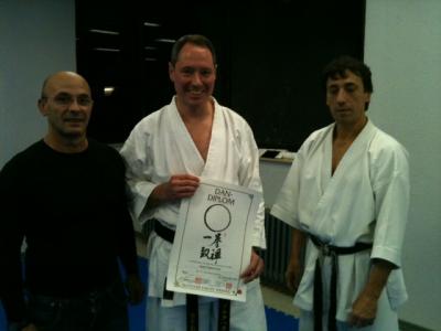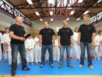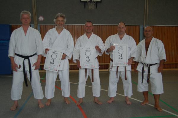 Werner Loers, Claus Fleischer und Masoud Vaziri erhielten ihre schwarzen Gürtel von Hardy Berscheid überreicht. Dei einer zentralen Dan-Prüfung beim Karateverein Bushido Bonn am 12. Juni 2011 haben sie den 1. Dan erfolgreich abgelegt. Der Applaus war den Schwarzgurt-Trägern sicher.