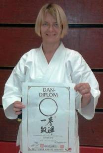 Moitzfeld/Bonn. Sie hat ihr angestrebtes sportliches Ziel erreicht und das, obwohl sie erst seit sechs Monaten bei Karate-Zanshin trainiert. Cornelia Otto erzielte ihren 2. Dan Shotokan bei einem vom Karateverein Bushido Bonn ausgeschriebenen Karate-Lehrgang in der Bundesstadt Bonn. Das hochkarätige Prüferteam bestand aus dem Kata-Bundestrainer, Efthimios Karamitsos, 7. Dan, sowie dem Stilrichtungsreferenten Shotokan, Gunar Weichert, 6. Dan (beide gehören dem Deutschen Karate Verein an). Weiterhin Georg Karras, 6. Dan und Vorsitzender von Bushido Bonn.
