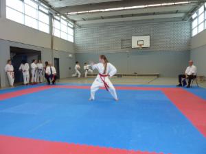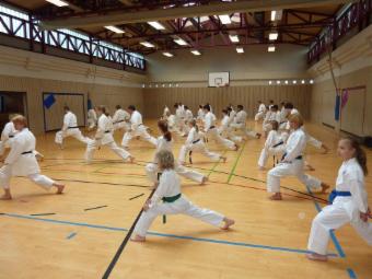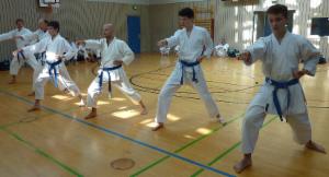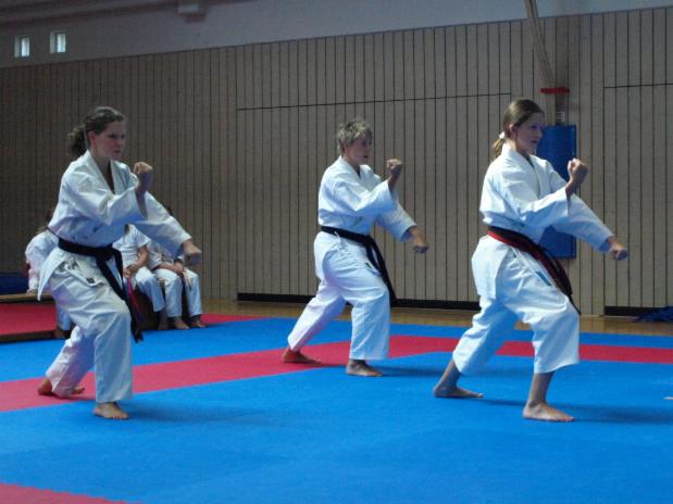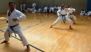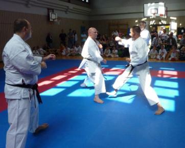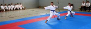 Diesem Kata- und Bunkai-Lehrgang folgten anschließend unterschiedliche Kyu-Prüfungen für Kinder, Jugendliche und Erwachsene. Die Prüfungsabnahme der insgesamt 25 Prüflinge erfolgte unisono durch Georg Karras und Hardy Berscheid.