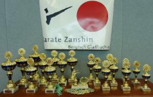 Die Pokale, Medaillen und Urkunden waren aufgereiht und warteten auf die erfolgreichen Karatekas. Eltern, Großeltern und viele Zuschauer verfolgten mit Spannung die Kämpfe ihrer Kinder, waren erfreut zu sehen, zu welchen Leistungen diese fähig sind. Die „Zanshin-Familie“ war wieder zusammen!