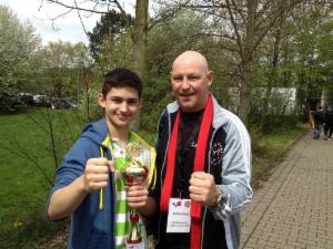 Yannick Drescher, der neue NRW-Landesmeister, mit seinem Coach Hardy Berscheid.