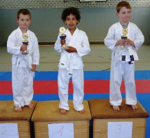 Kata-Unterstufe: 1. Platz: Timo Metze, 2. Platz: Jan Weiss, 3. Platz: Sven Trebonsek. Kata-Mittelstufe: 1. Platz: Laura Gloning, 2. Platz: Maximilian König, 3. Platz: Antonia Rappert.