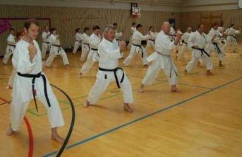 Moitzfeld. Der vom Karateverein Karate Zanshin Bergisch Gladbach e.V. unter Vorsitz von Hardy Berscheid, 5. Dan, ausgerichtete Kata- und Bunkai-Lehrgang in Moitzfeld war, wie erwartet, sehr gut besucht. Die Karatekas folgten diesem sportlichen Ereignis, denn Georg Karras, 6. Dan, Vorsitzender des Karatevereines Bushido Bonn, gilt stets als fachlicher Garant für dieses Zusammentreffen. Karras ging es sofort um einheitliche Perfektion in den Bewegungsabläufen, denen zwischendurch Hilfestellungen und Sondervorführungen folgten. Die Teilnehmer waren sehr stark gefordert, denn Karras ist bei dieser Art von Karate-Lehrgängen bekannt für seine Schnelligkeit in den differenzierten Vorführungen. Seine technischen Erklärungen fußen auf eine einwandfreie und perfekt vorgetragene Lehrvorführung, der eine außerordentliche Brillanz anhaftet. Die Karatekas aus Bergisch Gladbach und teilweise auch aus Bonn nutzten diese Gelegenheit, die eigenen Kenntnisse zu vertiefen und erlesene Karate-Techniken zu verinnerlichen. Im Unterstufen-Training wurde die Thematik „Heian Nidan“ abgehandelt. Im Oberstufen-Training folgten für die Braun- und Schwarzgurtträger die Katas zur Thematik „Gojusiho dai“. Ohne Zweifel: Georg Karras vermag mit seinem technischen Knowhow und seiner Eloquenz Karatekas unweigerlich in den Bann zu ziehen.