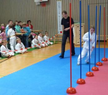 Moitzfeld. Seit Oktober 2009 gibt es eine Kleinstkindergruppe beim Karateverein Karate Zanshin Bergisch Gladbach e.V. Sieben Kinder im Alter von zwei bis drei Jahren sind mit ihren Müttern in der Sporthalle der Friedrich-Fröbel-Schule jeden Mittwoch von 15.15 bis 16.15 Uhr in spielerischer Bewegung. Motor dieser umfangreichen Bewegungen ist Angelika Berscheid, die mit Unterstützung der Mütter dafür sorgt, dass die Kleinsten motorische Bewegungsabläufe spielerisch aufnehmen. Auf dem Programm stehen Spielen, Klettern, Laufen, Springen und Ballspiele. Wert wird darauf gelegt, den Kleinstkindern eigene Spielräume zu geben, um deren Kreativität freien Lauf zu lassen. Die Initiatorin und die Mütter sorgen sich um den „großen Rahmen“, die Kleinstkinder tollen herum, lernen Rücksichtnahme und Teilen auf spielerische Art. „Das Programm ist angenommen worden“, so der Tenor von Angelika Berscheid, „weitere Kleinstkinder mit ihren Müttern sind willkommen".