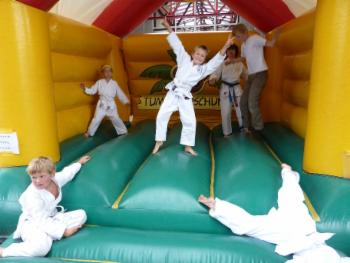 Spielerische Anlaufstelle für 13 „Bonsais“ des Karatevereines Karate Zanshin war das Spielparadies „Tummel Dschungel“ in Bensberg. Die Jugendvertreterinnen des Karatevereines, „Jaci“ Heppner und Petra Schweinshaupt, hatten eine sehr gute Idee und luden die sechs- bis achtjährigen Mädchen und Jungen zu einem Spiel-Nachmittag ein. Unterstützt wurden die weiblichen Ideengeberinnen noch von Vereinsmitglied Michael Laudenberg, so dass sich die „Bonsais“ mit den drei Trainern völlig ausgelassen im Spielparadies tummeln konnten. Und dort ging es wirklich zur Sache: Es wurde geklettert, gelaufen, gerannt, gehüpft, gerangelt, geschrieen und gesprungen, die „Bonsais“ tobten sich aus und erfreuten sich eines spielerischen und gelungenen Nachmittages. Für die Eltern der „Bonsais“ dürfte eines klar gewesen sein: „Zanshin“ tut was für die Kleinsten, nicht nur einmal im Jahr…