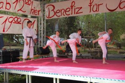 Bergisch Gladbach. Mit einem einstündigen Show-Programm in der Öffentlichkeit haben sich Karatekas von Karate-Zanshin an der Benefiz-Veranstaltung für Japan, in Verbindung mit weiteren Akteuren, vor der Gnadenkirche beteiligt. Ziel war es, den Karate-Sport der Stilrichtung Shotokan in einigen ausgewählten Facetten in der Öffentlichkeit etwas breiter zu verankern. Aus der Sicht des Vereinsvorsitzenden Hardy Berscheid, Karatelehrer und Träger des 4. Dan, sei dieses gelungen; der Applaus der anwesenden Gäste habe es deutlich gemacht. Karate-Zanshin spendete unverzüglich 50,00 Euro für dieses Benefiz-Ziel, um ebenfalls dazu beizutragen, die dortige Not etwas zu lindern. Die Aufmerksamkeit der Zuschauer war den jungen Karatekas sicher, die aus der Bewunderung für diesen Sport keinen Hehl machten.