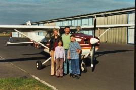 Im Fokus des Piloten: Laura hat es durch ihren Tombola-Gewinn möglich gemacht - Familie Taccuci nach den Rundflügen vor der viersitzigen Cessna C 172 Skyhawk in Bonn - Hangelar